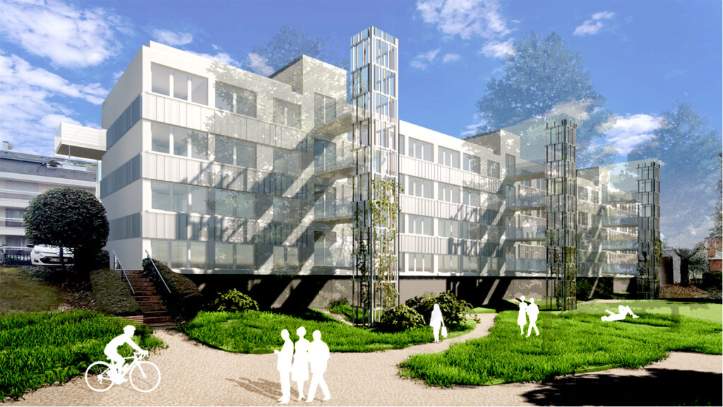 Les interventions ont porté sur l’isolation par l’extérieur, la réfection des gardes-corps et des menuiseries, ainsi que sur la mise en valeur des volumes existants grâce à une nouvelle composition des façades.