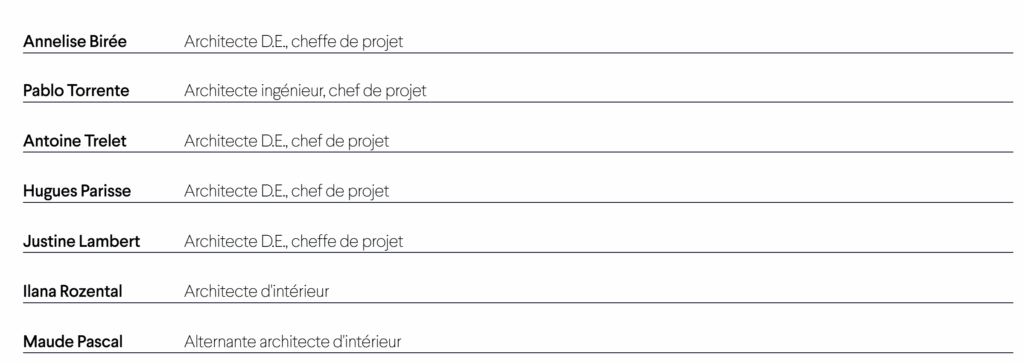 - Une équipe de 5 architectes permanents pluridisciplinaire et compétents sur l’ensemble des problématiques architecturales et énergétiques en rénovation.